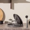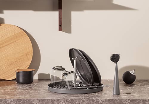 Pour en finir avec les torchons trempés ou la table de cuisine inondée ! Le bac de l’égouttoir permet de recueillir tout excès d’eau et peut facilement être vidé dans l’évier. L’égouttoir à vaisselle permet de déposer la vaisselle d’un service de quatre personnes max. et peut être facilement plié pour ne prendre qu’un minimum de place. Il suffit de tirer la tige vers le haut et de la poser.