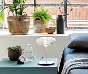 Cette lampe de table s’inspire du jeu d’ombres et de lumières que crée la lune en se cachant derrière la végétation. Concernant la lumière c’est une LED. Elle dispose également d’un variateur de lumière permettant de diffuser dans la pièce une lumière tamisée et reposante.