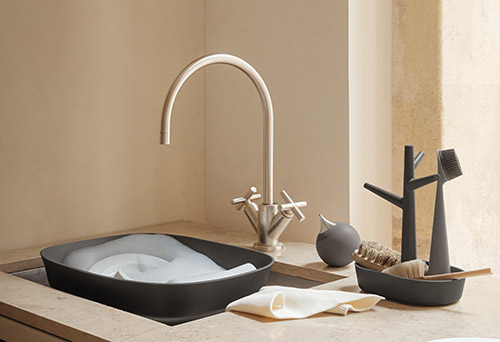 - Disposez aisément la brosse à vaisselle, le torchon et l’éponge