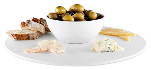 Le plat sur pieds ouvre une multitude de possibilités pour des étalages culinaires magnifiques et festifs. Il est particulièrement adapté pour servir des génoises, mais aussi pour les tapas et autres apéritifs et collations lorsqu’on le retourne. Le plat peut être décoré de nombreuses façons pour créer des arrangements de table encore plus festifs.