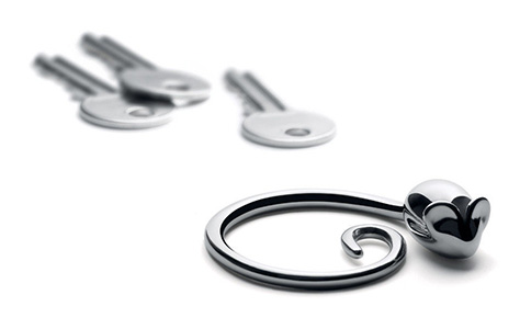 Pour continuer dans le genre figuratif élégant, léger et sympathique. Du crochet pour sac «Minou», le jeune designer belge Frederic Gooris y ajoute le Porte-clés «Pip» pour ranger vos clés.