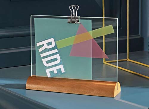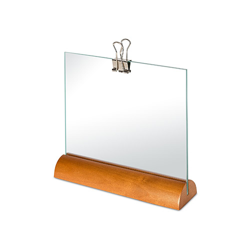 Un porte-photo sans cadre, qui laisse l’image s’exprimer pleinement: dessiné par Kuno Prey, il est simple, fonctionnel et inattendu. Facile à utiliser : il suffit insérer la photo dans le sens voulu entre les deux plaques de verre, les fixer ensemble à l’aide de la pince, puis les insérer dans la base en bois.