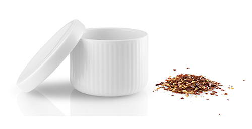 Ce petit ramequin à couvercle ajoute un élément intéressant à la table et a une multitude d’utilisations. Utilisez-le pour le sel, le poivre moulu, vos épices séchées préférées. De la même manière, il peut convenir pour les noix, les bonbons ou même pour les bijoux sur une coiffeuse.