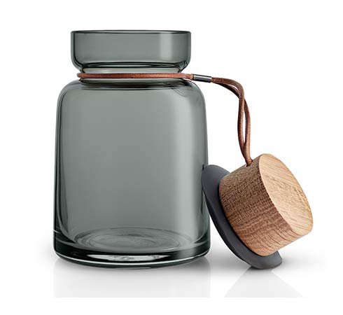 Ses pots de rangement en verre soufflé bouche sont parfaits pour y mettre les ingrédients tel que du muesli, des noix… De toute évidence, les pots de couleur fumée sont disponibles en quatre tailles. Le look est perfectionné par les couvercles en chêne massif huilé, qui sont fixés à chaque pot avec un bracelet en cuir.