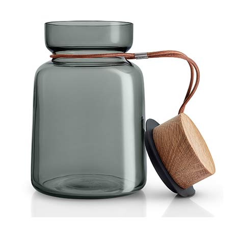 Ses pots de rangement en verre soufflé  bouche sont  parfaits pour y mettre les ingrédients tel que du muesli, des noix… De toute évidence, les pots de couleur fumée sont disponibles en quatre tailles.  Le look est perfectionné par les couvercles en chêne massif huilé, qui sont fixés à chaque pot avec un bracelet en cuir.