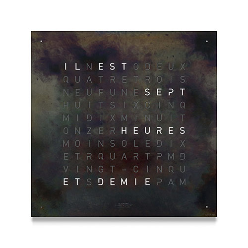 Le modèles s’accrochent au mur comme un tableau et peuvent également se poser sur un support en verre acrylique. L’horloge est disponible dans plus de 20 langues et fonctionnent sur secteur.